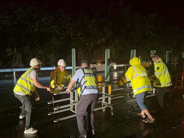 “S31三南高速柳州往三江方向K111+500处边坡发生小车撞护栏道路交通事故,请立即前往处置!”近日,广西交通投资集团柳州高速公路运营有限公司融安分公司(以下简称“融安分公司”)联合交警、交通执法等“一路多方”单位第一时间赶赴事故地点,维护清理现场并救助受伤司乘。
